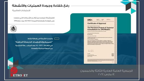 بتروجيت تحصل علي شهادة الايزو 9001 في تصميم وانتاج الخرسانة الجاهزة