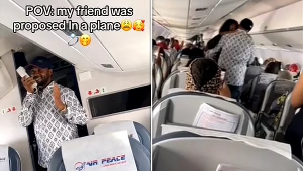 حب بين السما والأرض .. نيجيري يتقدم لخطبة صديقته على متن طائرة